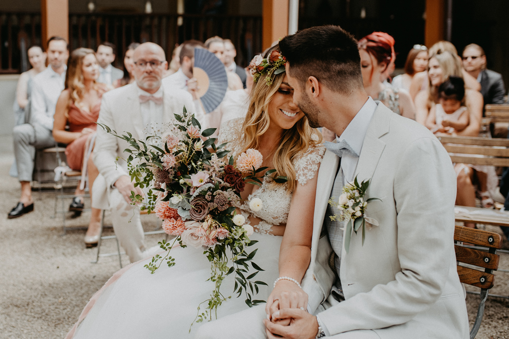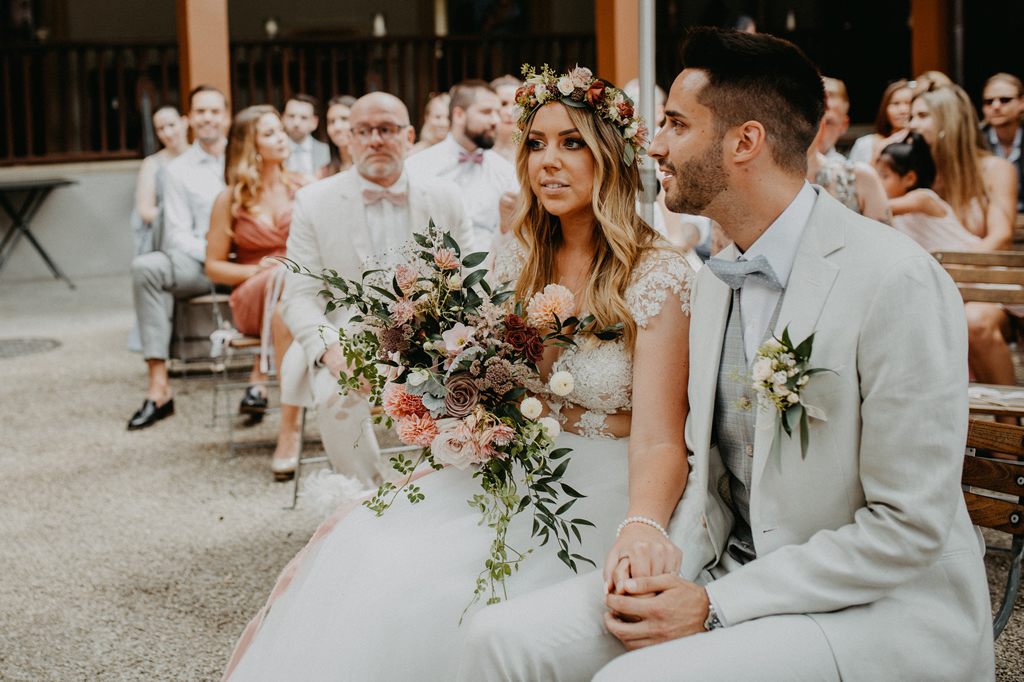 I love you, you love me. Das ist das, was bei allen gleich ist. An der Oberfläche. Doch da ist so viel mehr, es sind Geschichten, Persönlichkeiten und Träume, Visionen und Sehnsüchte. Jeder ist einzigartig, jede sogenannte Braut und jeder sogenannte Bräutigam hat seine ganz individuelle Erlebniswelt auf die ich eingehen will. Es interessiert mich, welche Stimmung das Brautpaar mit den Blumen verstärken möchte, ich will herausfinden, was sie beide repräsentiert, was sie zeigen wollen und was die Farbe und Sprache ihrer Liebe ist. Das Styling interessiert mich, dass das Florale Design in`s gesamte Konzept integriert ist und zu jedem noch so kleinen Detail passt. Es ist mein Anspruch, dass ein lockeres Gesamtbild entsteht, alles stimmig wirkt, dass das Gesamtkonzept dahinter wahrnehmbar ist, sich aber nicht aufdrängt. Am liebsten mag ich es, wenn meine lange und vertiefte Auseinandersetzung und Arbeit wirkt, als wäre es zufällig entstanden. Und zufällig stimmt es einfach. Diese Stimmung mag ich. Und wenn es dann hinterher heisst, es ist schöner geworden, als wir es uns vorstellen konnten, dann bin ich wirklich zufrieden.