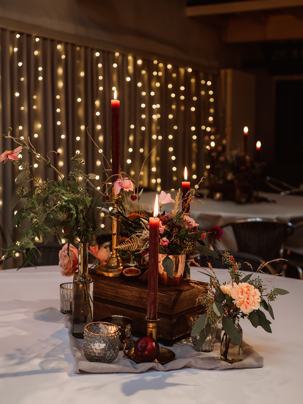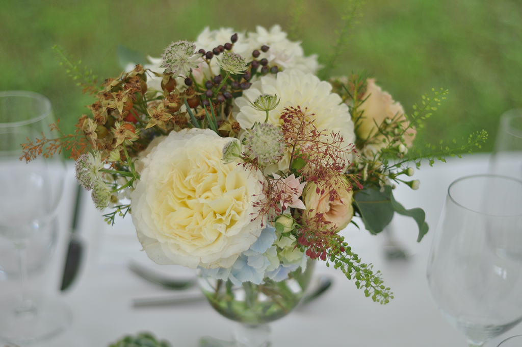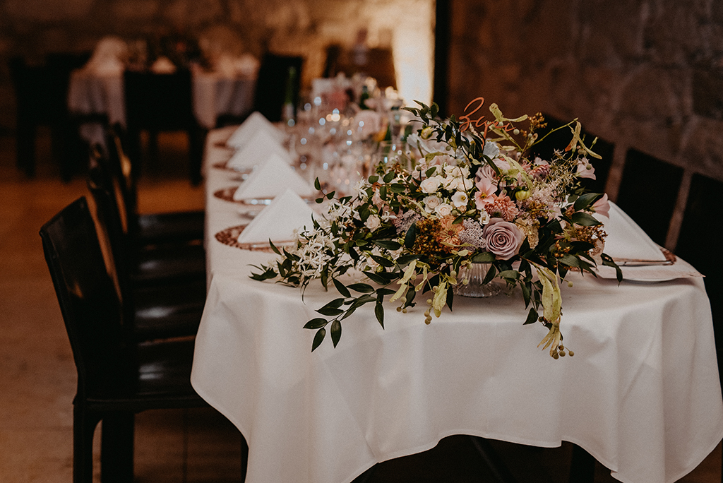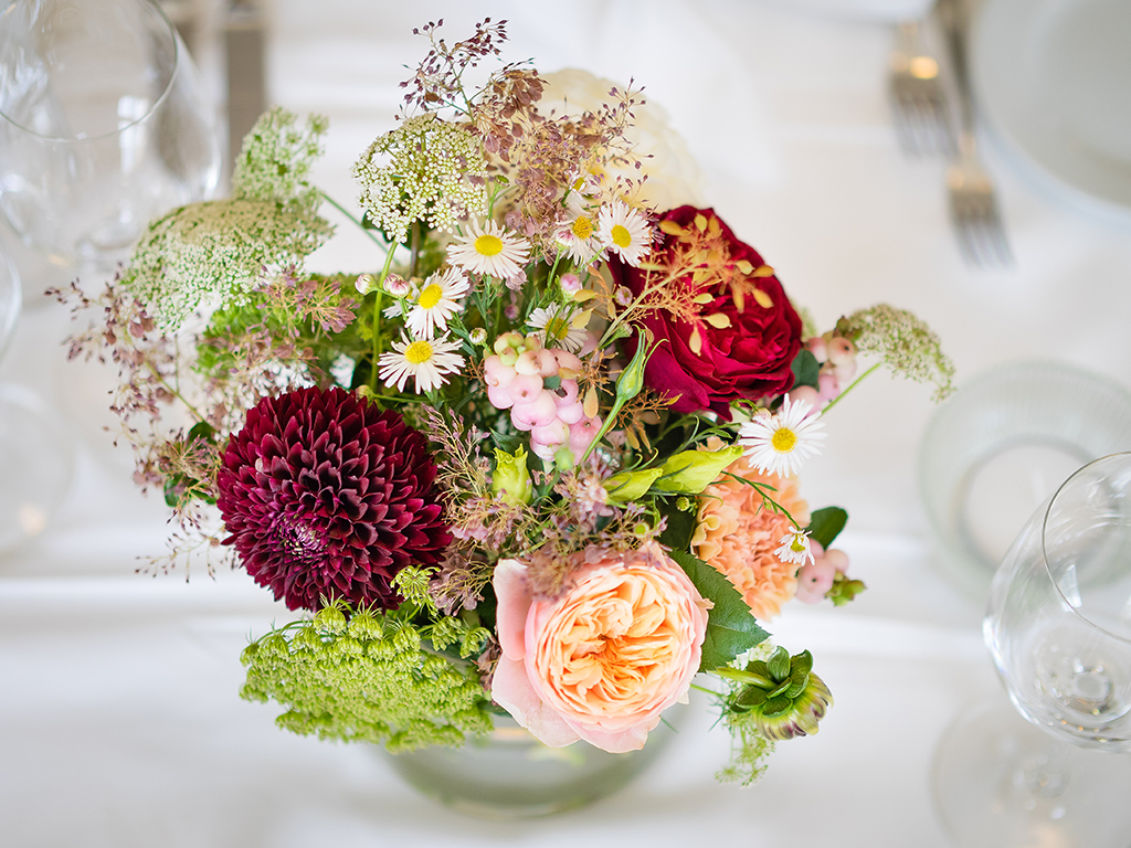 Ich liebe Florale Centerpieces, Herzstücke. Da kann ich mich so richtig ausleben und es wortwörtlich auf den Tisch bringen. Die Vielfalt ist gross und die Möglichkeiten unzählig. Der Tisch als Mittelpunkt an einer Feier, der Ort wo die Gäste am längsten verweilen und die tiefsten Begegnungen zustande kommen. Dem will ich ganz besondere Aufmerksamkeit zukommen lassen. Hier soll es feierlich zu und her gehen, eine festliche Tafel soll es sein. Hier geht es um Genuss und Freude, Fülle und Sinnlichkeit. Dies soll neben genüsslichem Essen und Trinken sowie den bereichernden Gesprächen auch in Stil, Design und Wirkung der Blumen und Kerzen zum Ausdruck kommen. Auch hier zählen neben üppigen Gestaltungen kleine Details wie ein einzelnes Zweiglein auf der Serviette, gebunden mit einem feinen Band.