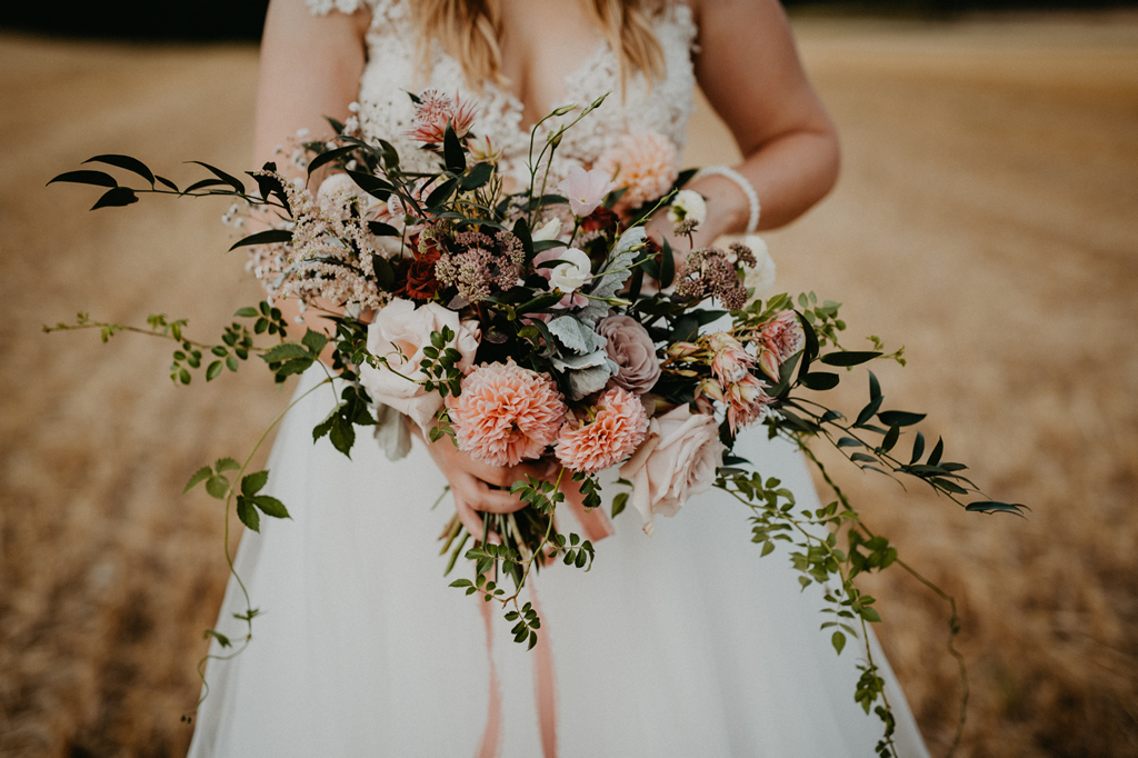 I love you, you love me. Das ist das, was bei allen gleich ist. An der Oberfläche. Doch da ist so viel mehr, es sind Geschichten, Persönlichkeiten und Träume, Visionen und Sehnsüchte. Jeder ist einzigartig, jede sogenannte Braut und jeder sogenannte Bräutigam hat seine ganz individuelle Erlebniswelt auf die ich eingehen will. Es interessiert mich, welche Stimmung das Brautpaar mit den Blumen verstärken möchte, ich will herausfinden, was sie beide repräsentiert, was sie zeigen wollen und was die Farbe und Sprache ihrer Liebe ist. Das Styling interessiert mich, dass das Florale Design in`s gesamte Konzept integriert ist und zu jedem noch so kleinen Detail passt. Es ist mein Anspruch, dass ein lockeres Gesamtbild entsteht, alles stimmig wirkt, dass das Gesamtkonzept dahinter wahrnehmbar ist, sich aber nicht aufdrängt. Am liebsten mag ich es, wenn meine lange und vertiefte Auseinandersetzung und Arbeit wirkt, als wäre es zufällig entstanden. Und zufällig stimmt es einfach. Diese Stimmung mag ich. Und wenn es dann hinterher heisst, es ist schöner geworden, als wir es uns vorstellen konnten, dann bin ich wirklich zufrieden.