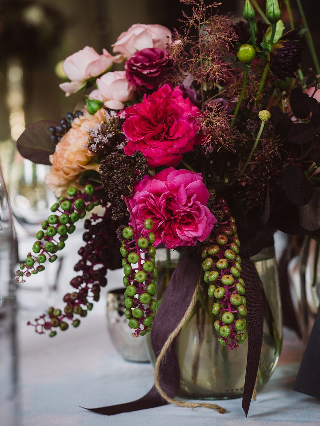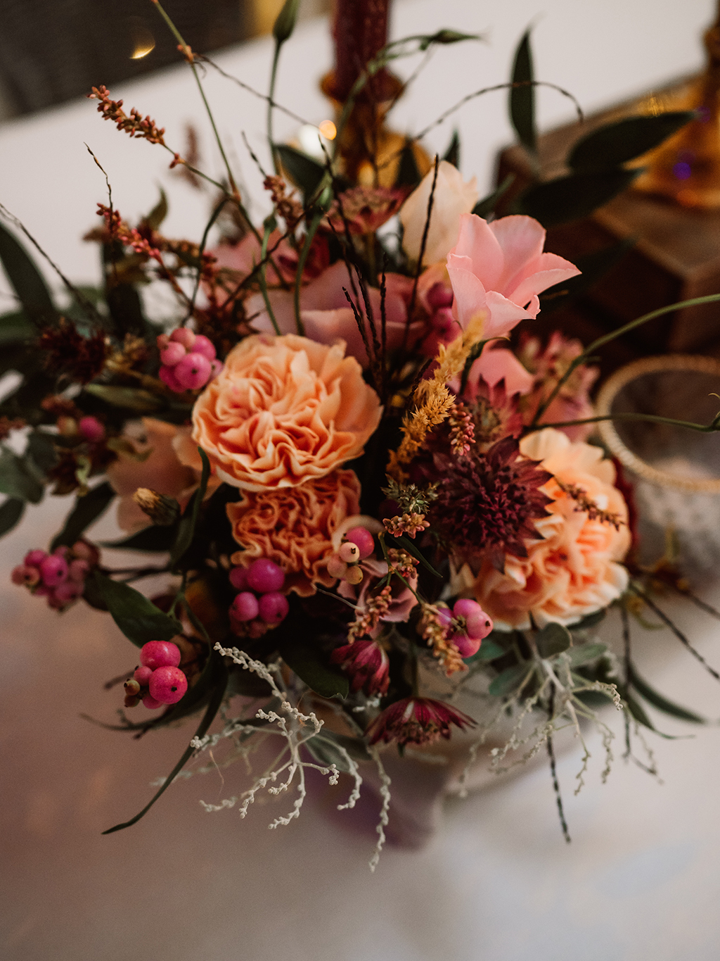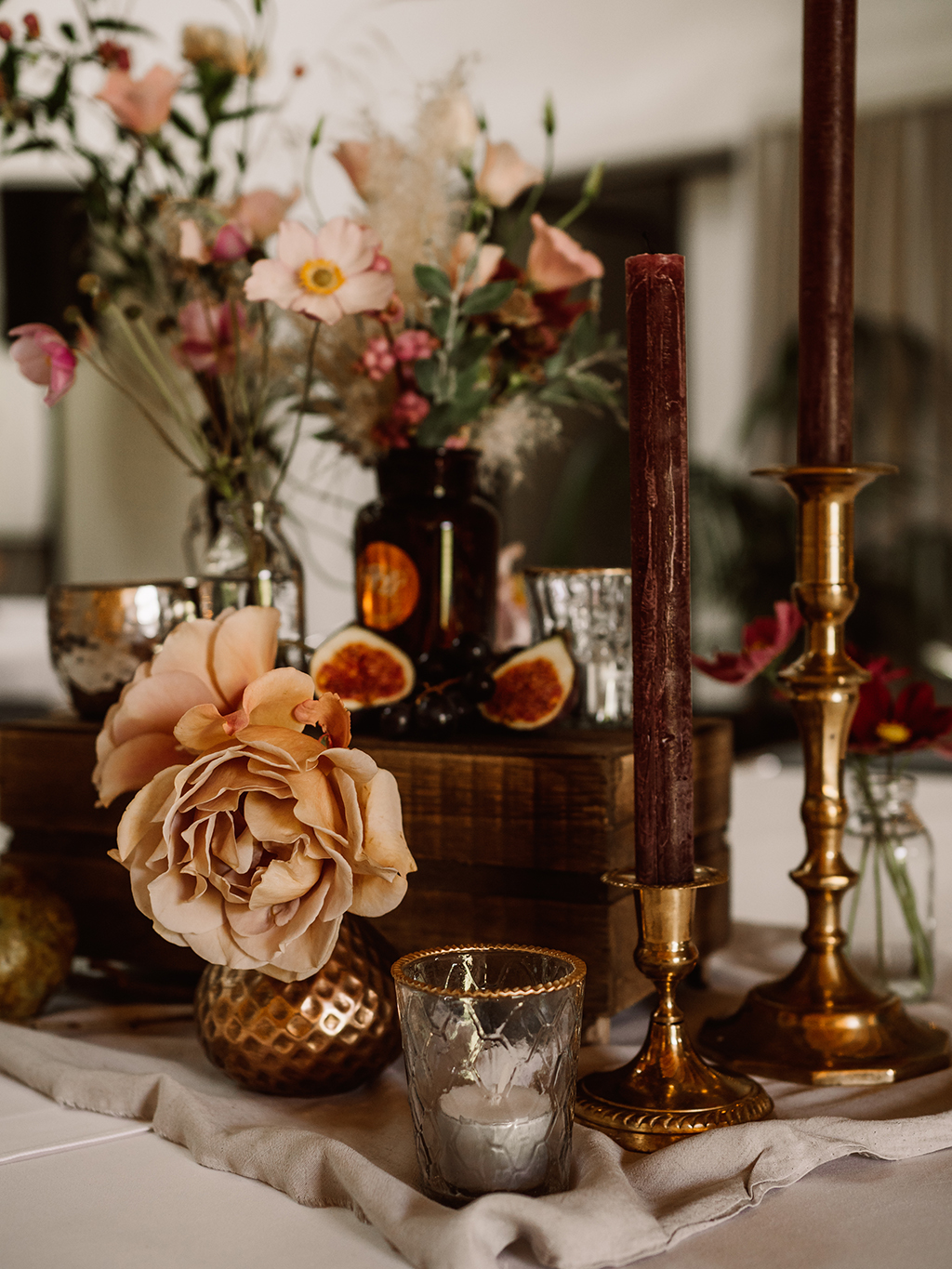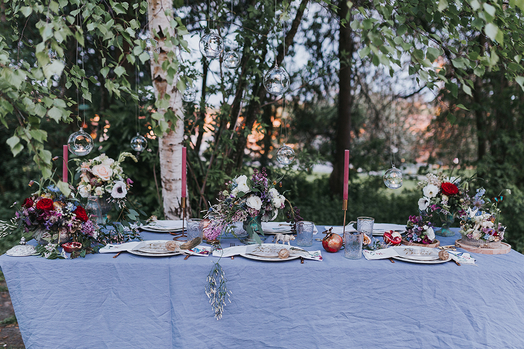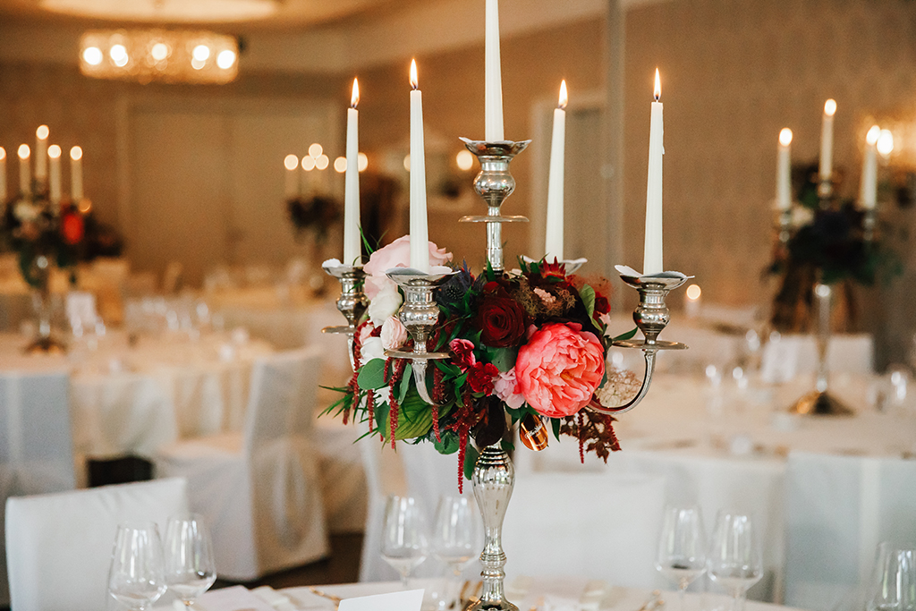 Ich liebe Florale Centerpieces, Herzstücke. Da kann ich mich so richtig ausleben und es wortwörtlich auf den Tisch bringen. Die Vielfalt ist gross und die Möglichkeiten unzählig. Der Tisch als Mittelpunkt an einer Feier, der Ort wo die Gäste am längsten verweilen und die tiefsten Begegnungen zustande kommen. Dem will ich ganz besondere Aufmerksamkeit zukommen lassen. Hier soll es feierlich zu und her gehen, eine festliche Tafel soll es sein. Hier geht es um Genuss und Freude, Fülle und Sinnlichkeit. Dies soll neben genüsslichem Essen und Trinken sowie den bereichernden Gesprächen auch in Stil, Design und Wirkung der Blumen und Kerzen zum Ausdruck kommen. Auch hier zählen neben üppigen Gestaltungen kleine Details wie ein einzelnes Zweiglein auf der Serviette, gebunden mit einem feinen Band.